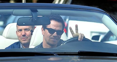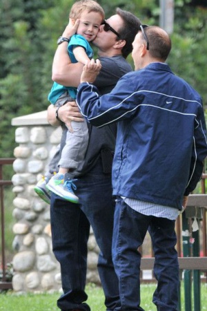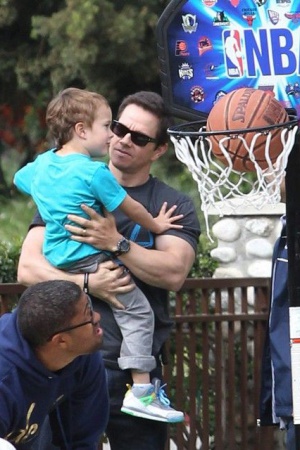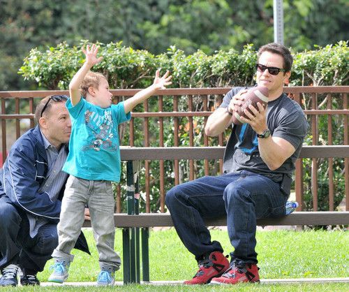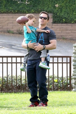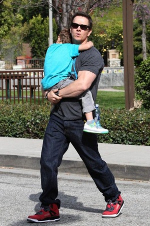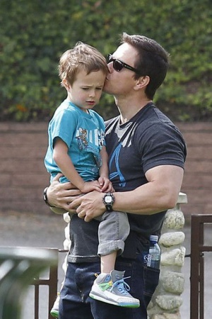 Заботливый отец Марк Уолберг отправился на прогулку со своим сыном.