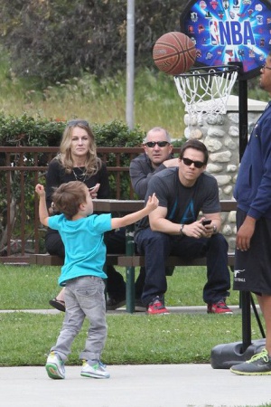 Похоже, Марк всячески старется привить малышу любовь к спорту: на детской площадке они успели поиграть и в баскетбол, и в американский футбол.