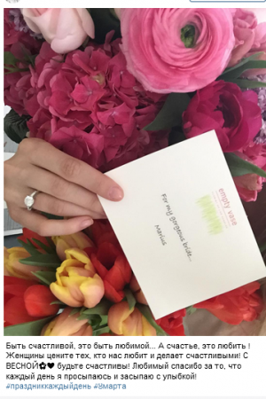 Наталья опубликовала фото, на котором запечатлен букет и ее рука с конвертом, на котором написано: “Моей прекрасной невесте“. Кроме того, на безымянном пальце правой руки Бардо фанаты заметили обручальное кольцо.