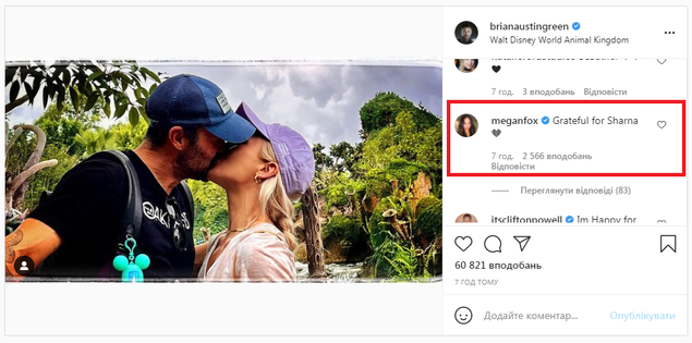 Похоже, отношения между Брайаном Остином Грином и Меган Фокс налаживаются. Об этом свидетельствует свежий комментарий актрисы под фотографией, на которой ее бывший муж изображен со своей новой девушкой.