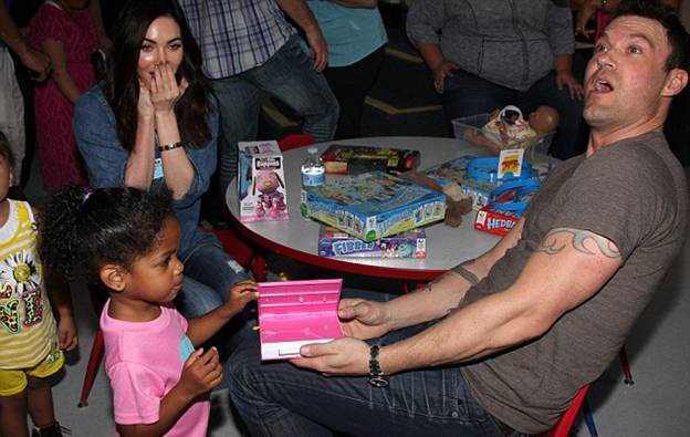 Недавно они стали родителями во второй раз и, похоже, что их родительские навыки пригодились им в полной мере. Меган Фокс и Брайан Остин Грин приняли участие в благотворительной акции, в ходе которой дарили игрушки детям, которые находятся на лечении в детском отделении медицинского центра Harbor UCLA, Калифорния.