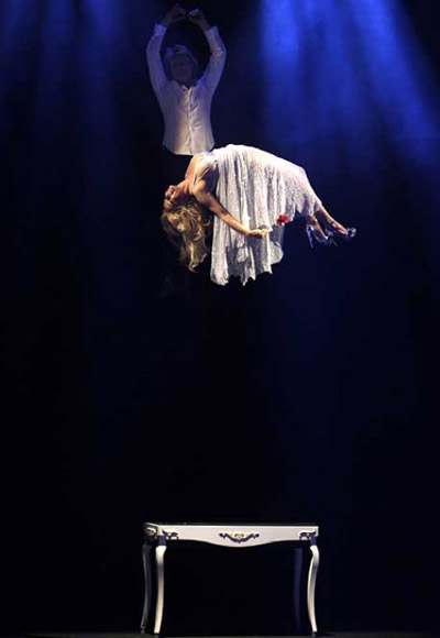 В Берлине в известном немецком телешоу Welcome to Carmen Nebel датский иллюзионист Ганс Клок показывал свои фокусы, а помощницей у него была всем нам известная пышногрудая блондинка, появившаяся перед зрителями без брюк, на ней был корсет и маленькие трусики.