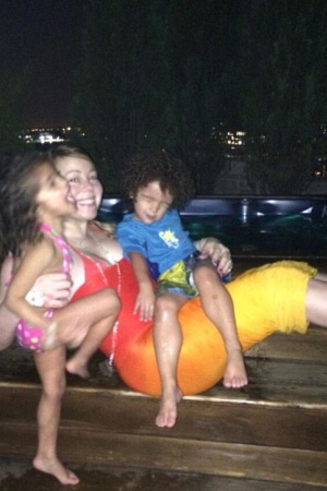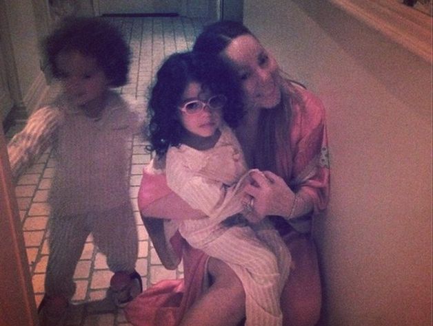 Звездная мамочка опубликовала в твиттере несколько фотоснимков, на которых позирует со своими очаровательными детьми – трехлетними сыном Морокканом и дочерью Монро.