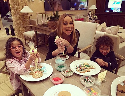 На следующем фото Кэри и ее дети занимаются приготовлением рождественского печенья.