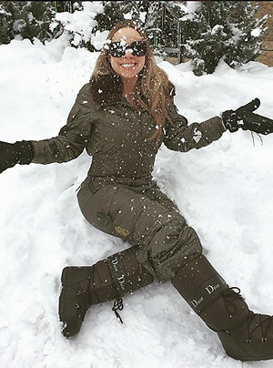 Позже в Instagram селебрити появились снимки, где она веселится в сугробе в стильном утепленном комбинезоне и массивных луноходах Dior. Кэри играет в снежки вместе с детьми - сыном Морокканом и дочерью Монро.