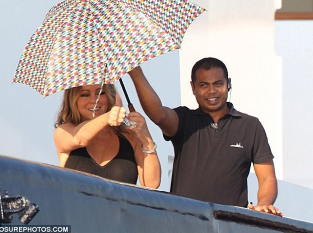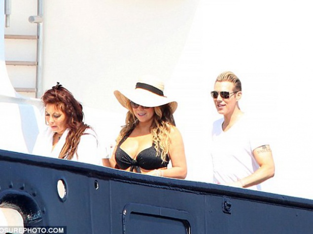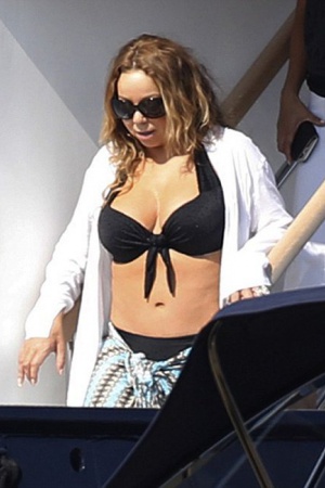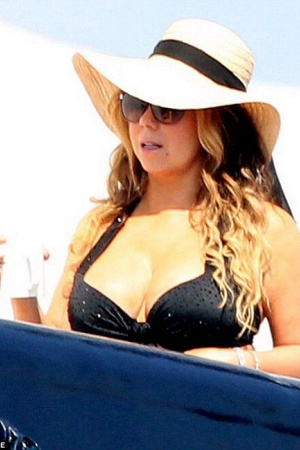Мэрайя Кери отправилась на прогулку на яхте своего новоиспеченного бойфренда-миллиардера Джеймса Пакера. Сам хозяин яхты не присутствовал, однако Мерайя проводила время достаточно весело в компании друзей-мужчин. На певице было открытое черное бикини и широкополая шляпа.