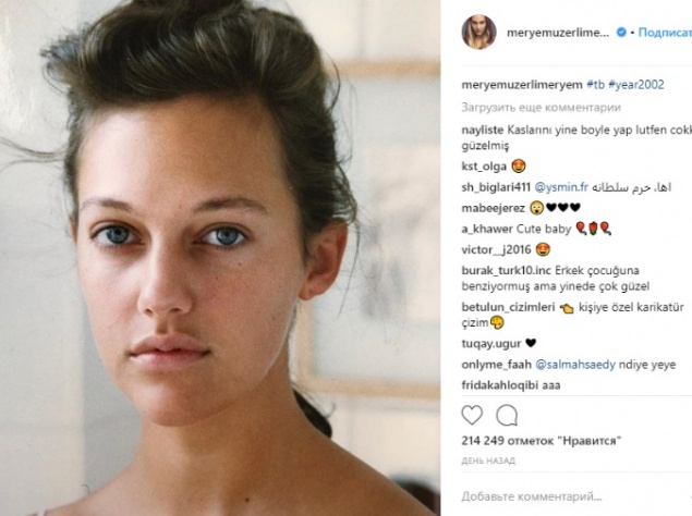Так, на своей странице в Instagram актриса поделилась архивным снимком 2002-го года — тогда ей было 19 лет. По фото, где Мерьем позирует без макияжа, видно, что уже в юности у нее были пухлые губы, а форма носа знаменитости не изменилась.