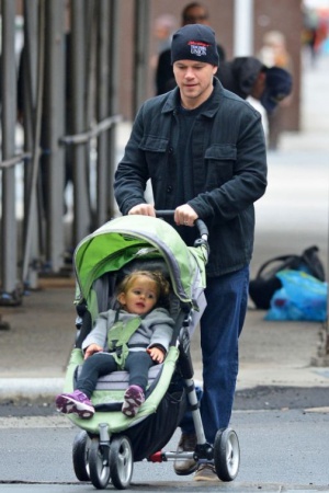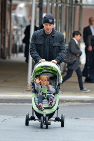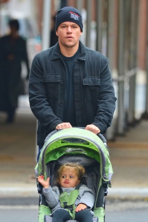 Мэтт Дэймон, как мы знаем, живет в сплошном девичьем царстве. Но для прогулки по Нью-Йорку он выбрал лишь младшенькую Стеллу. Отец с дочкой попались фотографам в районе Манхэттена, после чего отправились по магазинам в Сохо. Стелле еще нет и двух лет, а она уже замечает подозрительных людей с камерами и корчит им смешные рожицы.