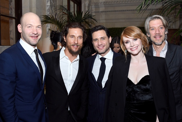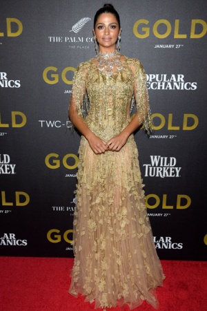 Для выхода в свет модель и мама троих детей выбрала блестящее золотистое платье, в котором стала похожа на статуэтку. Выбор наряда неслучаен: в фильме речь идет о современных золотоискателях, главного из которых играет МакКонахи.
