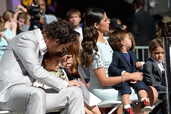 В "группе поддержки" знаменитости, конечно же, находилась его семья - жена Камила Альвес и трое детей - партнерши по фильму "Интерстеллар" (Interstellar) Маккензи Фой, Джессика Честейн и Энн Хэтэуэй.