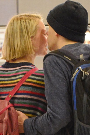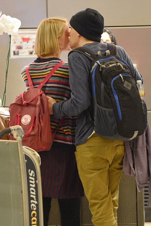 Фотографии звездной пары носят спокойный и расслабленный характер - актеры улыбаются друг другу и обнимаются, а также дружелюбно общаются с сотрудниками аэропорта.