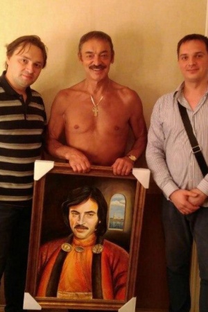Михаил Боярский стал героем портрета петербургской художественной группы Митьки. На фотографии, которую художники опубликовали в соцсетях актер позирует без рубашки, прикрывшись большой картиной.