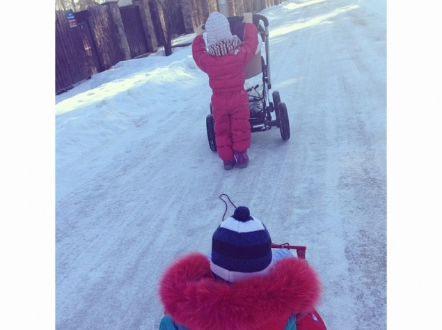 "Команда в красном! Нина все успевает и коляску толкать и санки подтягивать!", - подписала фото Надежда.