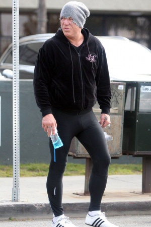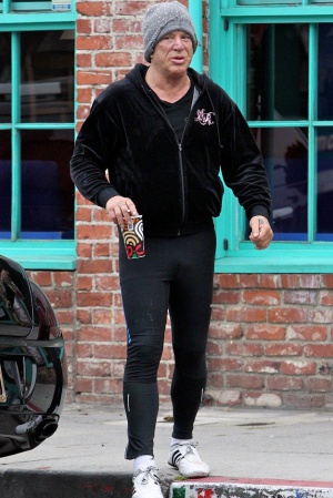 60-летний Микки Рурк еще в 2008 году на съемках фильма "Рестлер" пристрастился к обтягивающим легинсам из спандекса. Прошло вот уже несколько лет, а актер продолжает носить довольно необычные для его возраста штаны и в реальной жизни.
