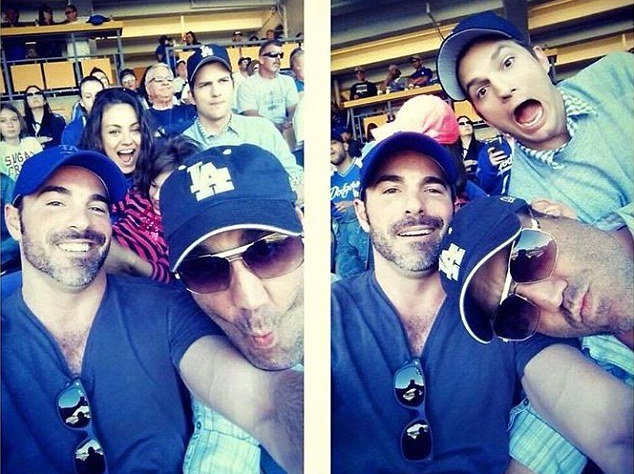 На снимках актер позирует со своей возлюбленной Милой Кунис, а также с веселыми друзьями, которые присоединились к паре во время просмотра игры.