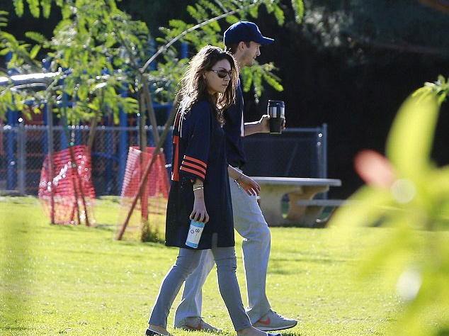 Мила и Эштон отправились погулять по парку возле дома и нарядились в практически одинаковые вещи. Оба предпочли светлые джинсы и бейсбольные футболки. Причем футболки на влюбленных были одинакового размера – такого, который идеально подходит Катчеру. На 35-летнем актере вещь сидела неплохо, а вот его подруга буквально тонула в своем наряде.