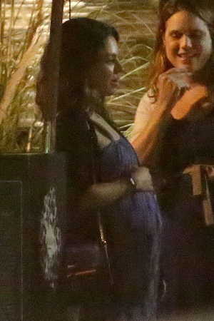 Будущая мама была сфотографирована в Лос-Анджелесе возле одного из элитных ресторанов, где ужинала со своими близкими друзьями.