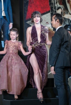 Вместе с Миллой на красной дорожке появилась и ее дочь Эва. Но все внимание прессы было сосредоточено на вечернем наряде Йовович. Голливудская красотка выбрала для мероприятия платье с откровенными вырезами, которые подчеркнули соблазнительные ножки актрисы и ее декольте.