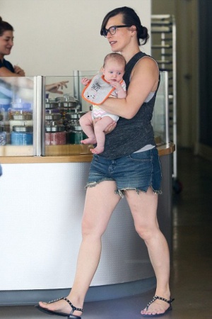 С 1 апреля, того самого дня, как на свет появилась малышка Дашиэль, Милле не то, что не удалось похудеть. Фанаты и светские обозреватели отмечают, что она сильно поправилась. Тем не менее, сама Милла, очевидно, довольна своей фигурой. На прогулку она надела короткие джинсовые шорты, но живот предпочла скрыть за просторным топом.