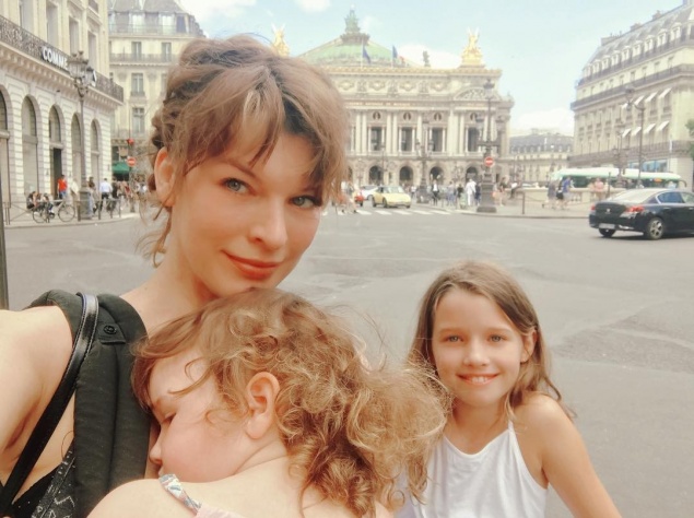 "Я и мои прекрасные девочки гуляем по Парижу в мой выходной. Очень жарко и душно, но нет ничего лучше, чем погулять по улицам с этими маленькими леди", – подписала снимок Милла.