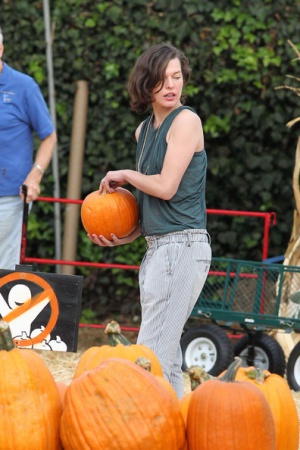 Америка активно готовится к самому главному празднику осени – Хэллоуину. Голливуд не исключение: звезды ходят по тыквенным рынкам и выбирают вместе с детьми красавиц для торжества. Вот и Милла Йовович взяла за ручку мужа Пола Андерсона с дочкой Эвер и отправилась за тыквой.