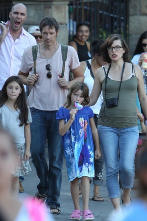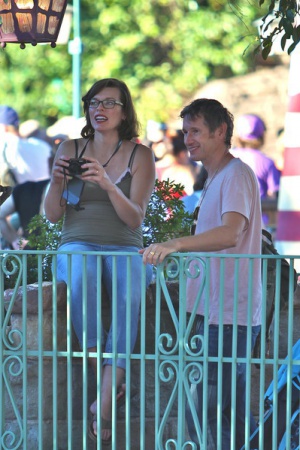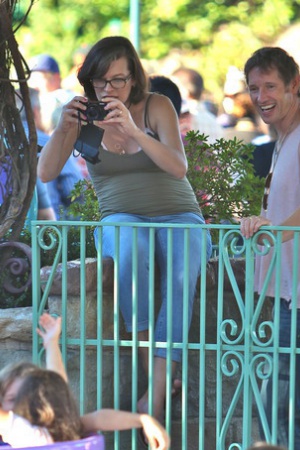Милла Йовович провела прекрасный день в Диснейленде. Компанию ей составили муж Пол Андерсон и дочь Эвер.