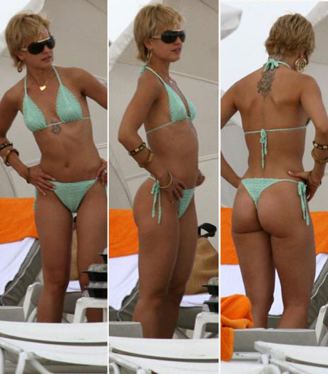Наверное, в знаменитой сцене из фильма «Красота по-американски» розы скрывали больше тела Мины Сувари, чем ее бикини, в котором она появилась на одном из пляжей в Майями с неизвестным мужчиной. Надеемся, что это все-таки ее нынешний бой-френд Симон Сестито.