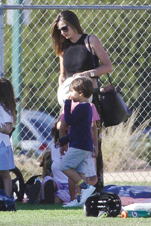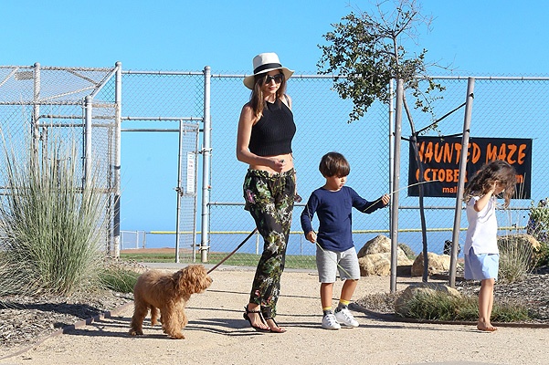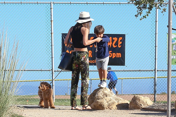 Керр отвезла 4-летнего Флинна на бейсбольный матч в Малибу. Да, этого малыша приучают к спорту с самого детства. Кстати, компанию звездной маме и ее сыну составила собака модели.
