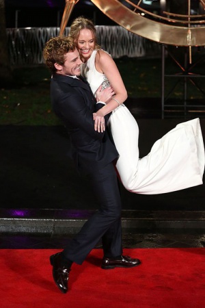 В понедельник вечером прошла мировая премьера фильма "Голодные игры: И вспыхнет пламя". На красной ковровой дорожке на Лестер-сквер возле кинотеатра "Одеон"  собрались почти все создатели франшизы.