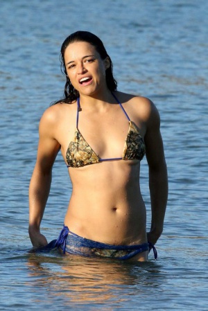 Мишель, как всегда, предпочитает активный отдых. Она ныряла в море с пирса, каталась на доске и много плавала. Чтобы избежать травмы правого колена, которое она повредила несколько лет назад, Родригес предусмотрительно надела на него фиксирующую повязку. Так что не стоит беспокоиться — звезда в полном порядке.