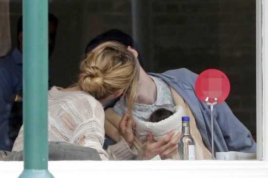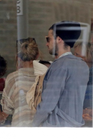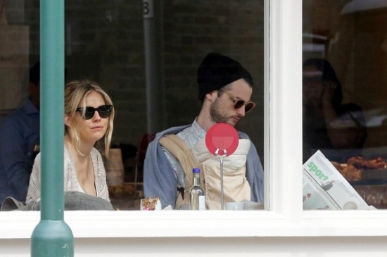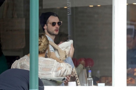 Сиенна Миллер и Том Старридж повстречались фотоохотникам в одном из уличных кафе. Молодые родители устроили поздний завтрак и прятали глаза под темными очками. Вместе с Сиенной и Томом была их малышка Марлоу, появившаяся на свет, напомним, в минувшем июле.