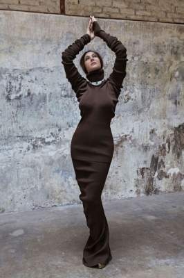 А полностью закрытое и обтягивающее фигуру платье Беллуччи сочетала с красивым колье с камнями на шее.