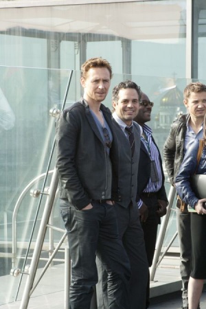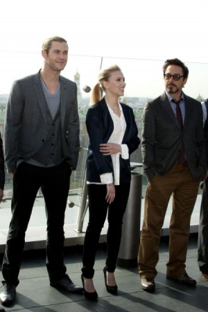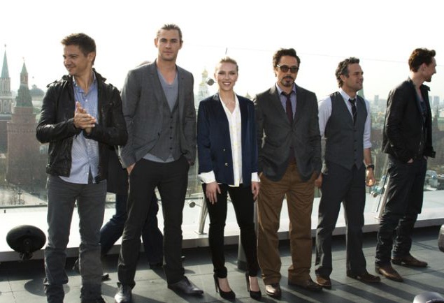 В Москве на крыше отеля "Ритц Карлтон" собрались фотографы российских изданий. На фоне кремлевских звезд журналистам позировала команда фильма "Мстители", выход на экраны которого назначен на 3 мая. Фильм в столицу привезли актеры фильма: Крис Хемсворт, Скарлетт Йоханссон, Роберт Дауни мл., Джереми Реннер, Том Хиддлстон и Марк Руффало.