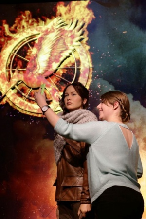 В отличие от большинства фигур представленных в музее, Китнисс выражает собой силу, храбрость и стойкость характера. Она не улыбается, а своим положением тела говорит нам о готовности сражаться. Создателям восковой копии практически на 100% удалось передать образ героини Дженнифер Лоуренс, но к сожалению самой Джен на презентации своего "двойника" не было.