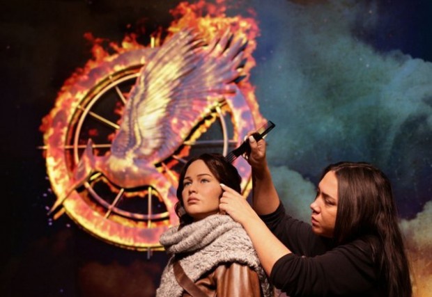 На этот раз в восковом воплощении перед посетителями предстала на знаменитость, а главная героиня фильма "Голодные игры" Китнисс Эвердин.