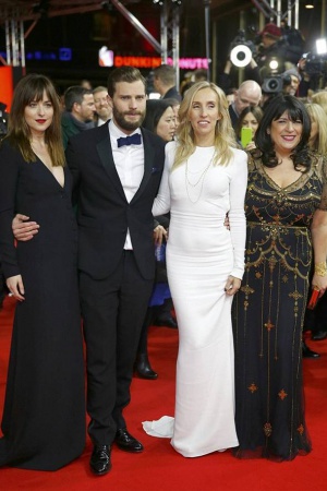 В среду вечером в рамках Берлинского кинофестиваля состоялась премьера фильма "Пятьдесят оттенков серого", которую назвали его официальным скринингом. Фильм представляли исполнители главных ролей Дакота Джонсон и Джейми Дорнан, а также режиссер картины Сэм Тейлор-Джонсон и автор одноименного романа, по которому был снят фильм, Э.Л. Джеймс.