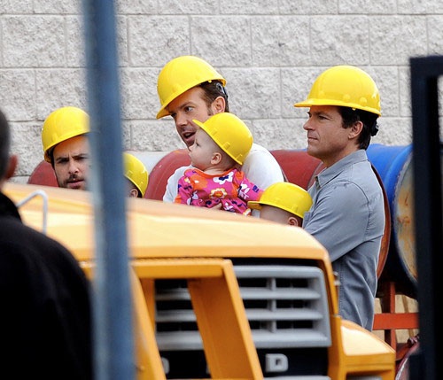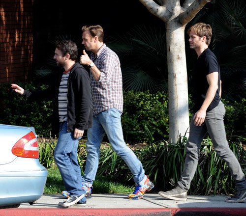 Побитый Крис Пайн в компании с Джейсоном Судейкисом в роли няньки были замечены на съемках фильма "Несносные боссы 2".