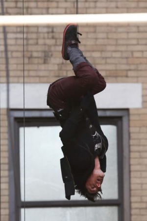 Съемки фильма "Новый Человек-паук 2" проходят в Нью-Йорке. Эндрю приходится нелегко в шкуре супергероя, ведь Человек-паук редко опускается на землю. Актеру пришлось и повисеть вниз головой и самостоятельно забираться в окна домов.