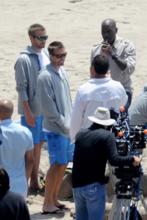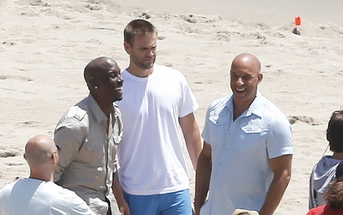 Продолжаются съемки фильма "Форсаж 7". На площадке были замечены Вин Дизель, Мишель Родригес, Джордана Брюстер и братья Пола Уокера, помогающие закончить роль покойного актера.