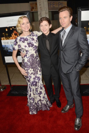 Наоми Уоттс и Юэн МакГрегор с женой на премьере фильма-катастрофы "Невозможное" в Голливуде.