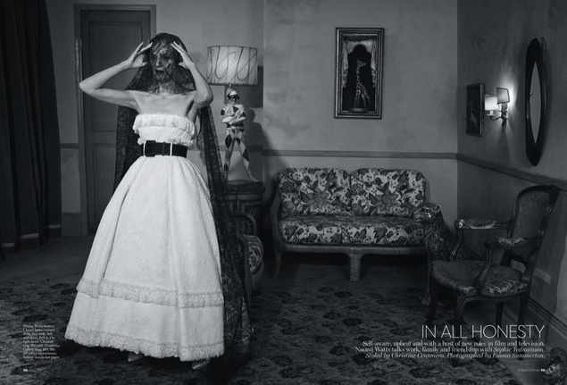 Страницы глянца 48-летняя Наоми Уоттс украсила в нарядах от Chanel, Armani Prive, Giambattista Valli, Givenchy и Jean Colonna, пишет Fashion Gone Rogue. Автором съемки выступила фешн-фотограф Эмма Саммертон. За стиль актрисы отвечала Кристин Сентенера.