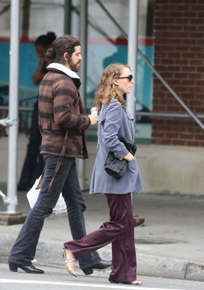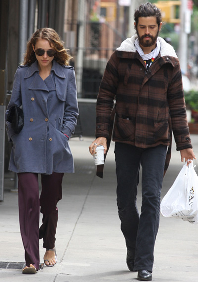 Натали Портман в очередной раз попалась папарацци со своим новым бойфрендом Девендрой Бэнкхартом. Парочка гуляла. Девендра все так же лохмат. Натали все так же печальна рядом с ним.