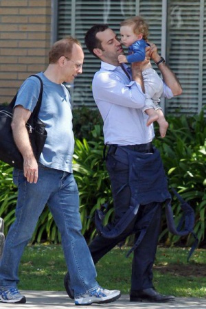 Натали Портман попалась в объективы в Лос-Анджелесе почти всей семьей. Актрису засняли возле дома с папой Авнером Хершлагом, мужем Беджамином Мильпье и сыном Алефом.