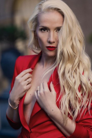 В своем Instagram артистка поделилась фотографиями с новой фотосессии, на которых появилась в очаровательном образе. Так, на снимках звезда позирует в красном атласном костюме с откровенным декольте. На фото знаменитость изображена с роскошными длинными белыми волосами.