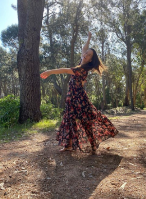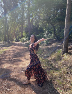 В Instagram 43-летняя звезда "Дикого ангела" опубликовала серию снимков, на которых эмоционально танцует посреди леса. Знаменитость с распущенными волосами и без макияжа эффектно демонстрирует свою растяжку. Для прогулки на природе артистка нарядилась в легкое черное платье в цветочный принт.