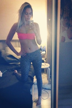 Белокурая красотка Наталья Рудова дала поклонникам еще один повод восхититься ее красотой – на днях актриса поделилась свежими снимками в своем Instagram. Помимо безупречных фото без макияжа, Наталья запостила еще и свою безупречную стройную фигурку. Красавица позирует перед зеркалом в розовом топе и леопардовых леггинсах – наряд открыто демонстрирует плоский и подтянутый животик звезды.