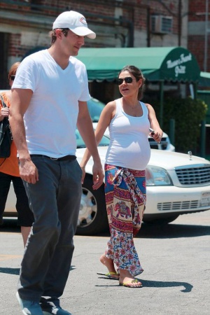 На днях сладкая парочка Эштон Катчер и Мила Кунис вновь попали в поле зрения американских папарацци. Будущие родители, конечно же, не обрадовались появлению фотографов, но скрыться от них, как это обычно происходило, у влюбленных не получилось. Первым, что бросается в глаза, глядя на эти снимки, огромный живот Милы Кунис, который она, ко всему прочему, подчеркнула облегающей белой майкой. Расслабленный образ актрисы дополнила длинная цветочная юбка с пестрым орнаментом, а также удобные неоновые вьетнамки.