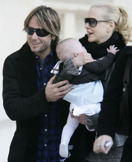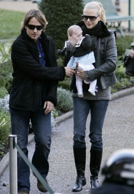 Николь Кидман и Кейт Урбан взяли свою малышку Сандей Роуз с собой в Париж. Николь продолжает присутствовать на премьерах нового фильма "Австралия". Именно для этого вся их семья прибыла во Францию.