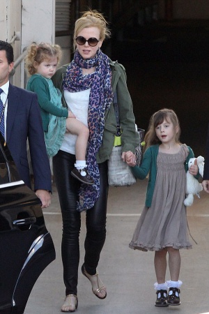46-летняя Кидман была замечена в аэропорту Сиднея с 5-летней Сандей и 3-летней Фэйт. Старшая шла с мамой за руку, а младшую актриса несла на руках. Уже сейчас можно сказать, что девочки унаследовали от мамы ее вздернутый носик, белую кожу и светлые глаза. А младшей достались еще и кудрявые волосы.
