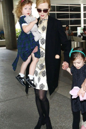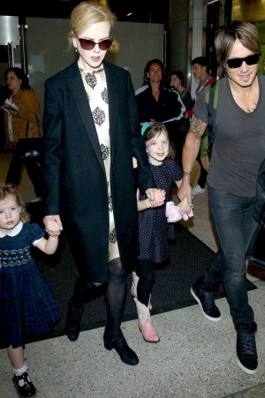 На днях звезду и ее семью сфотографировали в аэропорту Лос-Анджелеса. Фотографам удалось запечатлеть Николь, ее супруга Кита Урбана и очаровательных дочерей Сандей Роуз и Фейт.